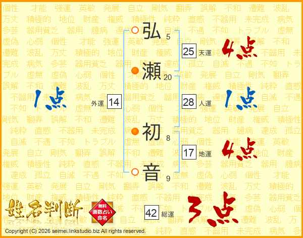 弘瀬初音さんの外運は14画の1点!