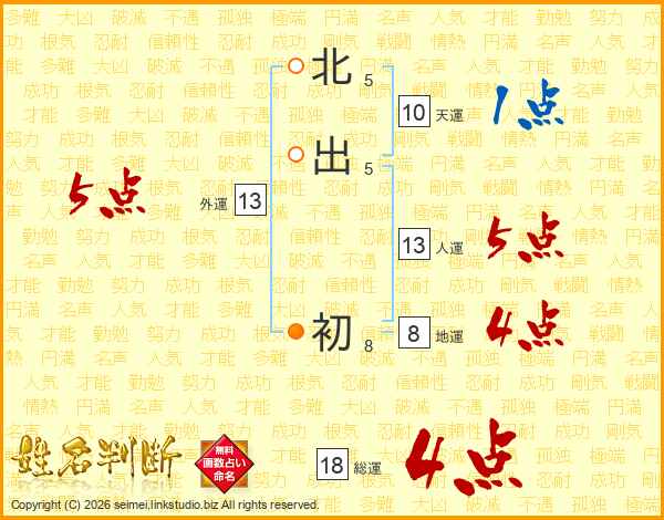 北出初さんの人運は13画の5点!