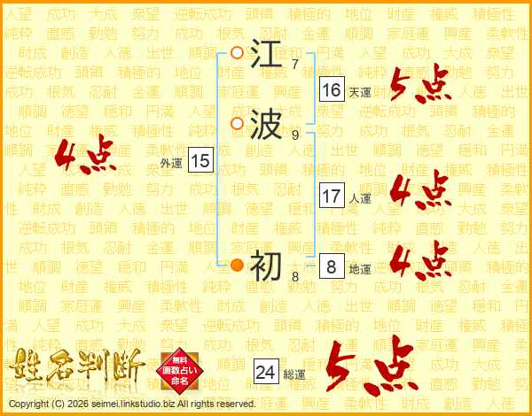江波初さんの総運は24画の5点!