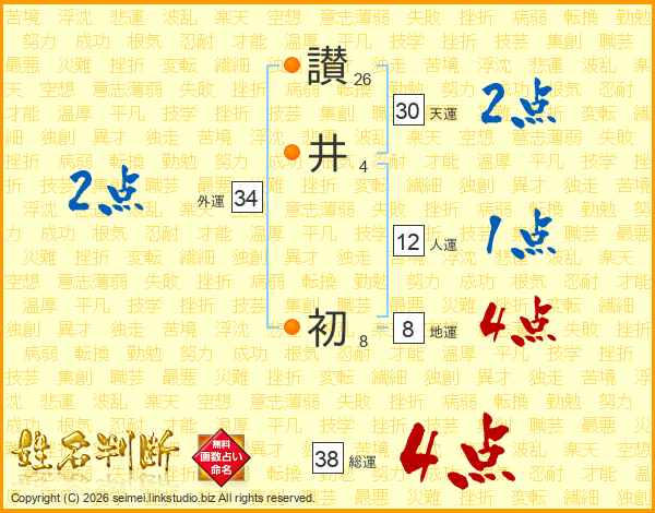 讃(26画)井(4画) 初(8画)