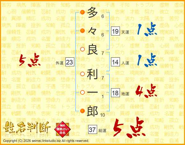 多々良利一郎さんの総運は37画の5点!
