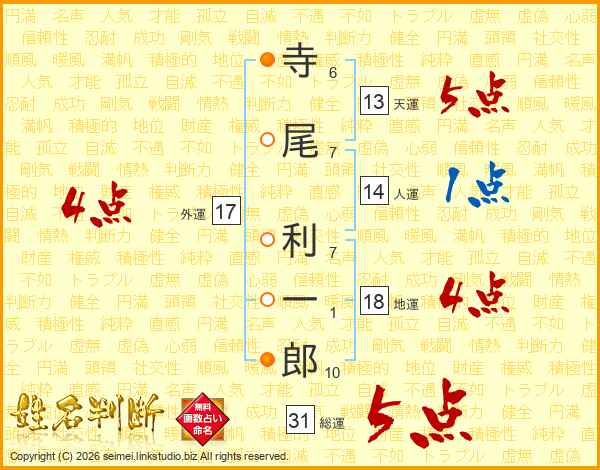 寺尾利一郎さんの総運は31画の5点!