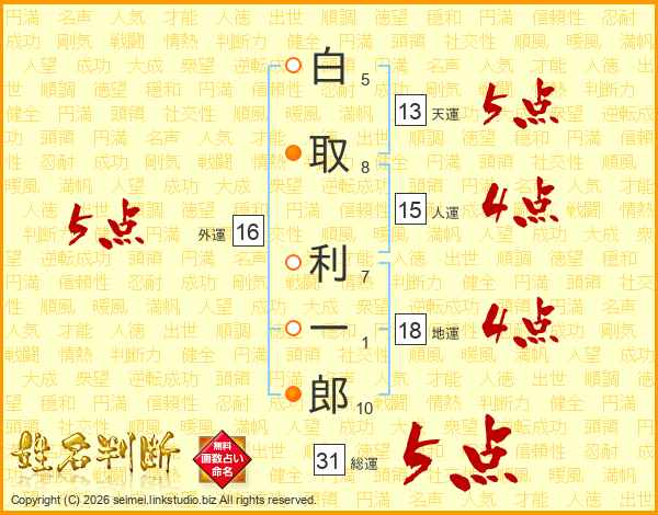 白取利一郎さんの総運は31画の5点!