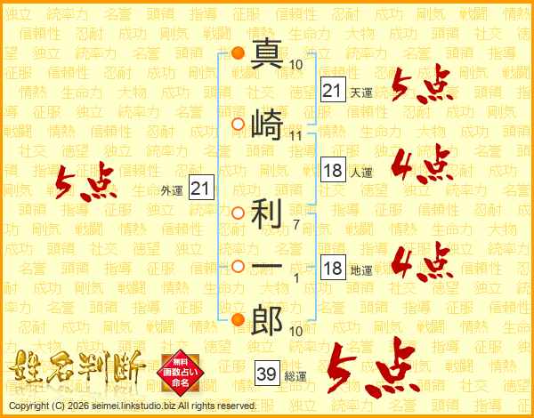 真崎利一郎さんの総運は39画の5点!