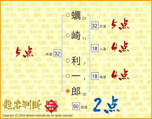 蠣崎利一郎さんの天運は32画の5点!