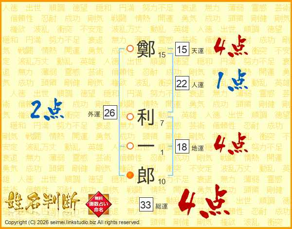 鄭利一郎さんの総運は33画の4点!