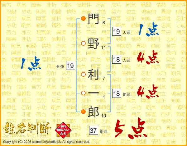 門野利一郎さんの総運は37画の5点!