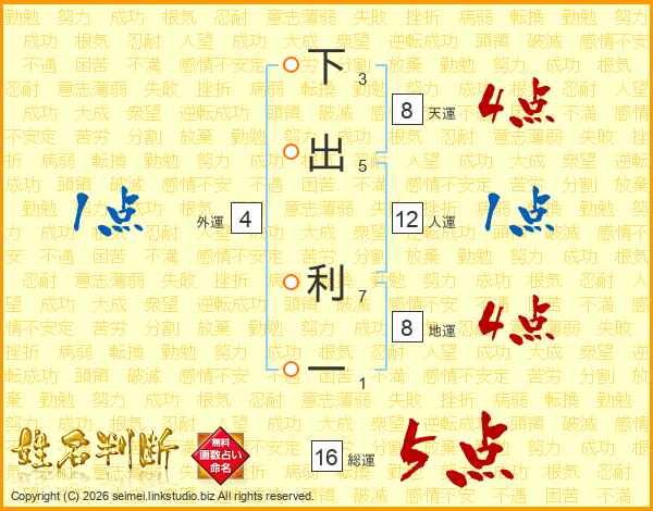 下出利一さんの総運は16画の5点!