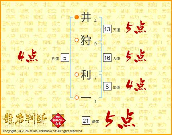 井狩利一さんの総運は21画の5点!