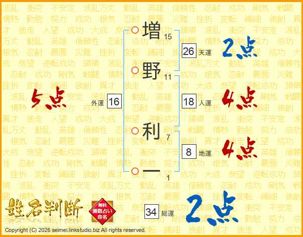 増野利一さんの天運は26画の2点!