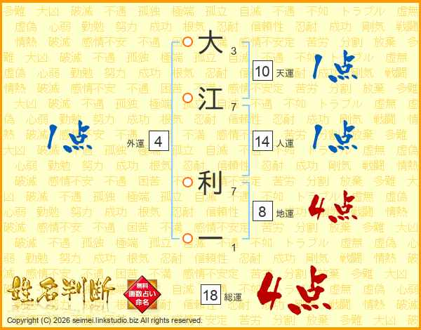大江利一さんの総運は18画の4点!