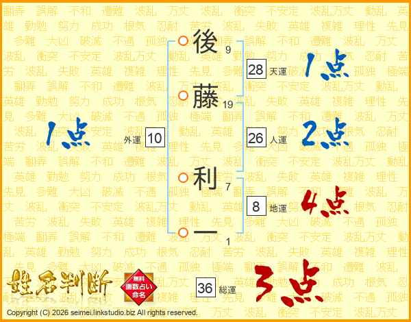 後藤利一さんの人運は26画の2点!