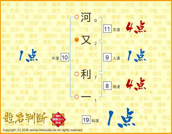河又利一さんの天運は11画の4点!