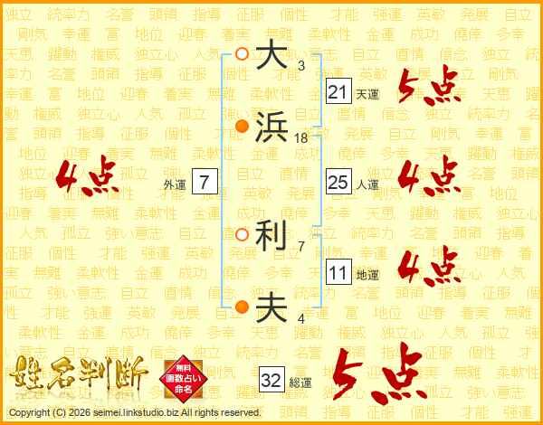 大浜利夫さんの総運は32画の5点!