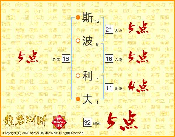 斯波利夫さんの総運は32画の5点!