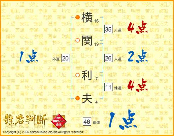 横関利夫さんの人運は26画の2点!
