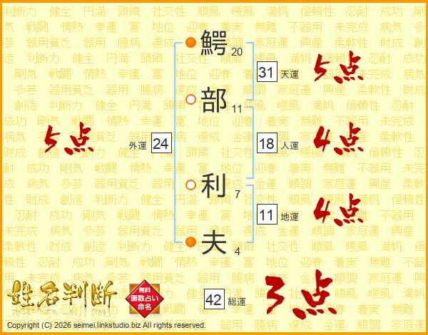 鰐部利夫さんの地運は11画の4点!