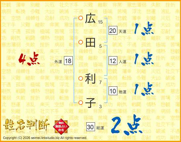 広田利子さんの総運は30画の2点!
