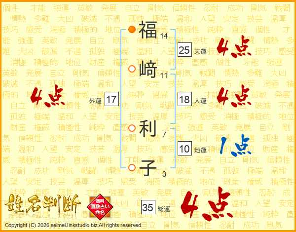 福﨑利子さんの総運は35画の4点!