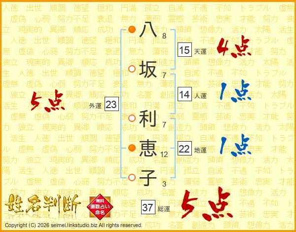 八坂利恵子さんの総運は37画の5点!