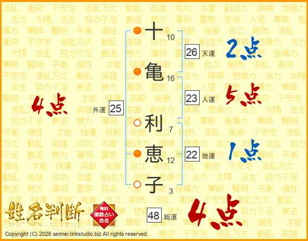 十亀利恵子さんの総運は48画の4点!