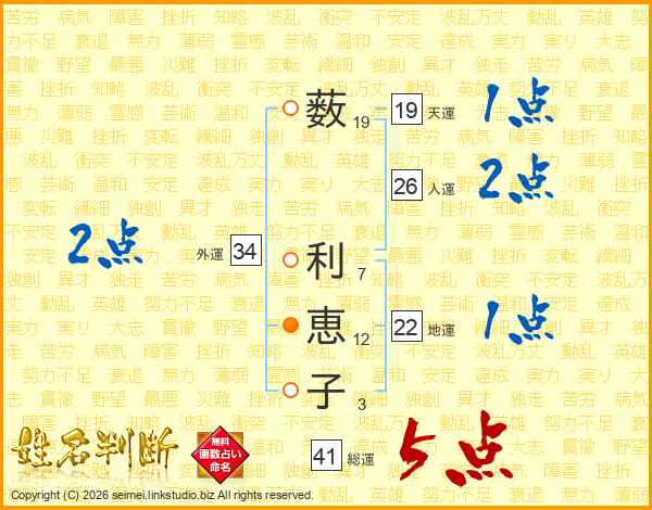 薮利恵子さんの総運は41画の5点!