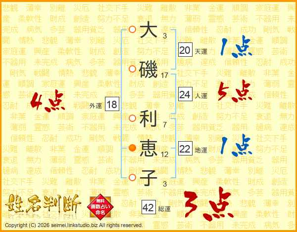 大磯利恵子さんの総運は42画の3点!