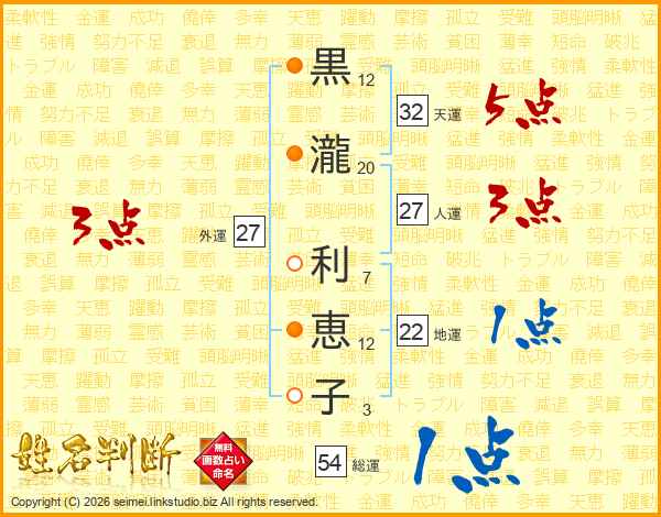 黒瀧利恵子さんの天運は32画の5点!