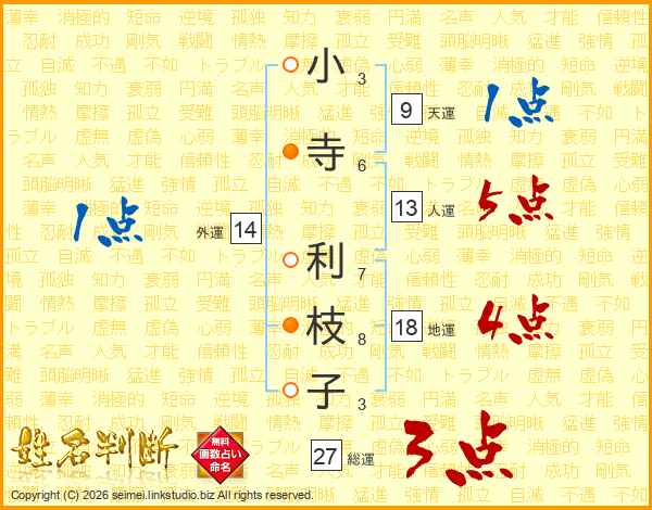 小寺利枝子さんの総運は27画の3点!