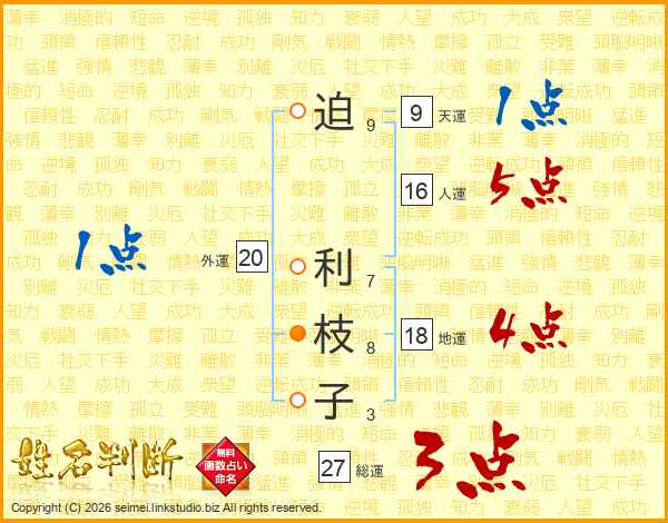 迫(9画) 利(7画)枝(8画)子(3画)