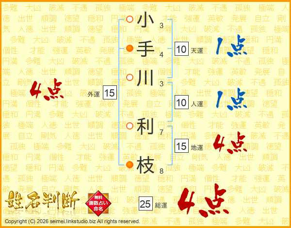 小手川利枝さんの総運は25画の4点!