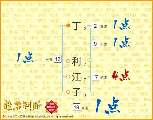 丁利江子さんの総運は19画の1点!