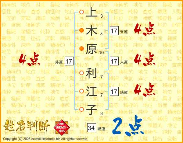 上(3画)木(4画)原(10画) 利(7画)江(7画)子(3画)