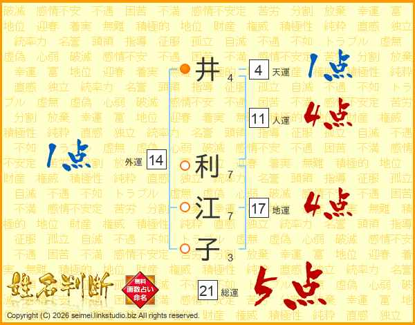 井利江子さんの総運は21画の5点!