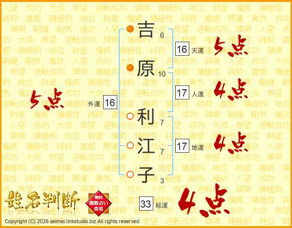 吉原利江子さんの総運は33画の4点!