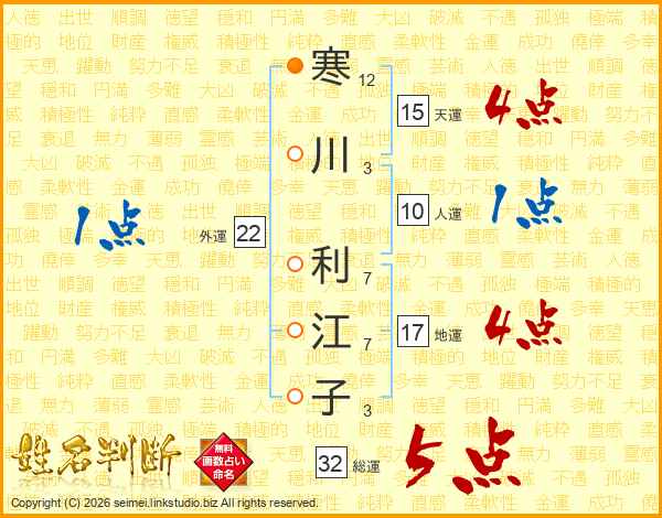 寒(12画)川(3画) 利(7画)江(7画)子(3画)