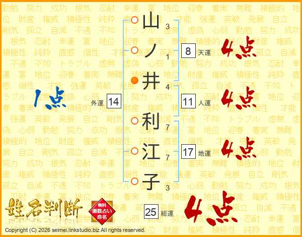 山ノ井利江子さんの総運は25画の4点!