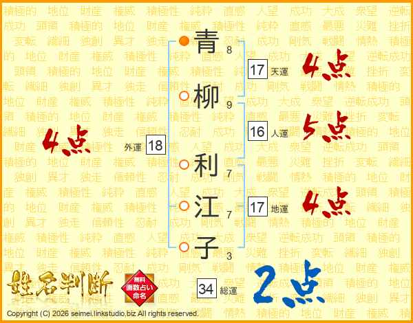 青柳利江子さんの外運は18画の4点!