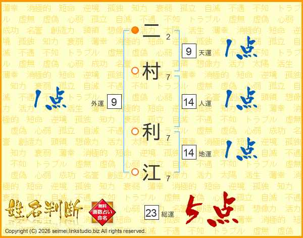 二村利江さんの総運は23画の5点!