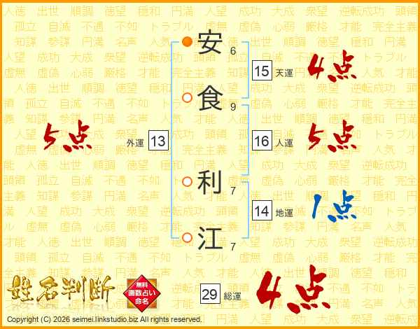 安食利江さんの総運は29画の4点!