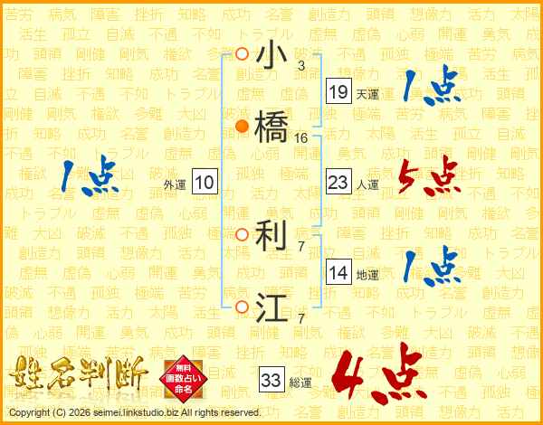 小橋利江さんの総運は33画の4点!