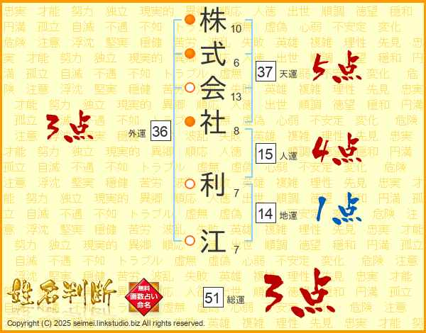 株(10画)式(6画)会(13画)社(8画) 利(7画)江(7画)