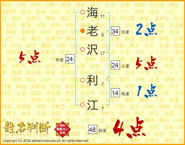 海老沢利江さんの人運は24画の5点!