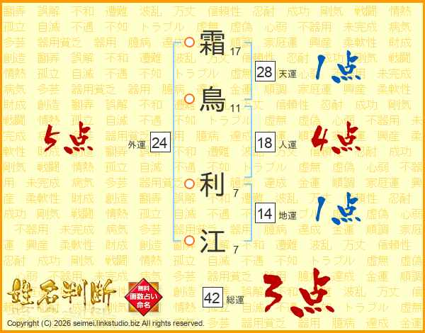 霜(17画)鳥(11画) 利(7画)江(7画)