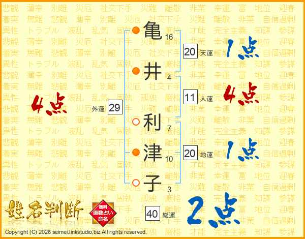 亀井利津子さんの総運は40画の2点!