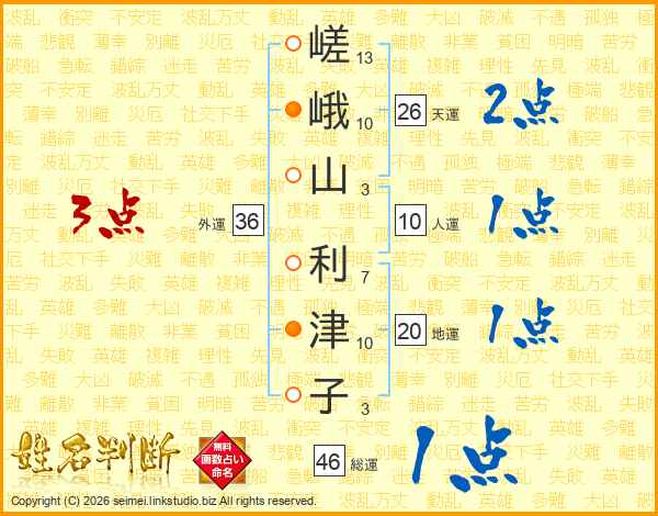 嵯峨山利津子さんの総運は46画の1点!