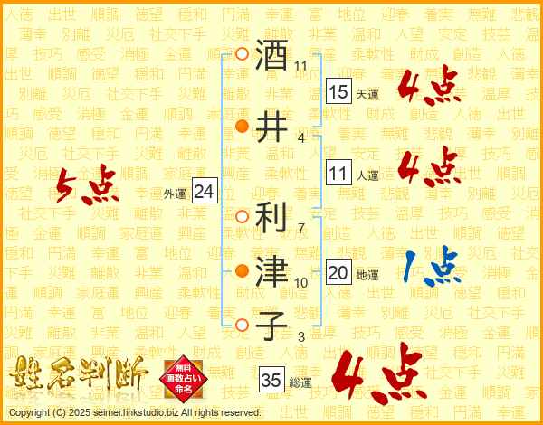 酒井利津子さんの総運は35画の4点!