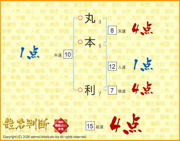 丸本利さんの総運は15画の4点!