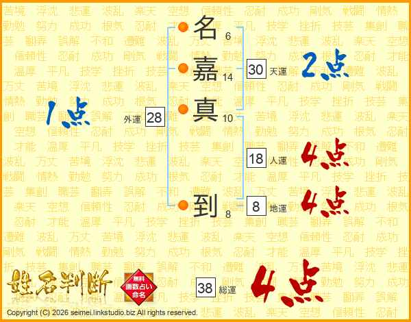 名嘉真到さんの総運は38画の4点!