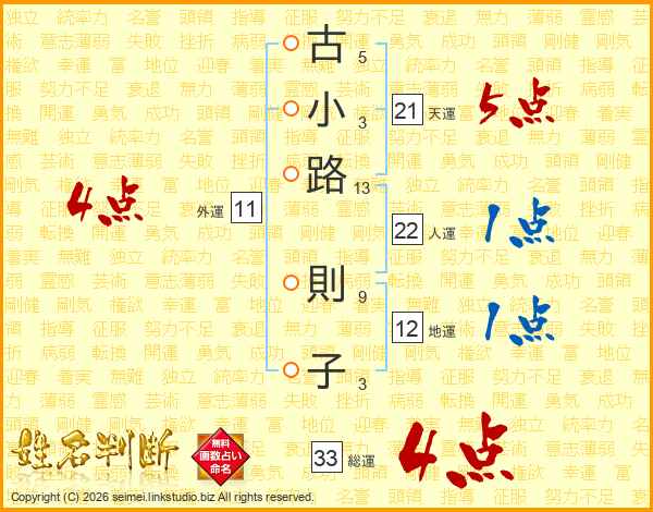 古(5画)小(3画)路(13画) 則(9画)子(3画)